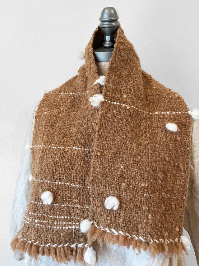 イギリスからやってきたこっくりとした茶色のコッツウォルドをベースにしました。 迫力感ある厚手手紡ぎ手織のツイード。両サイドの藍色で柔らかな印象に。 使って育てる一生モノ。 原毛:コッツウォルド・マンクス・ロムニー・他 染:発酵建藍染 サイズ(cm):L80xW19 (フリンジ6cm) 重さ(gram):142