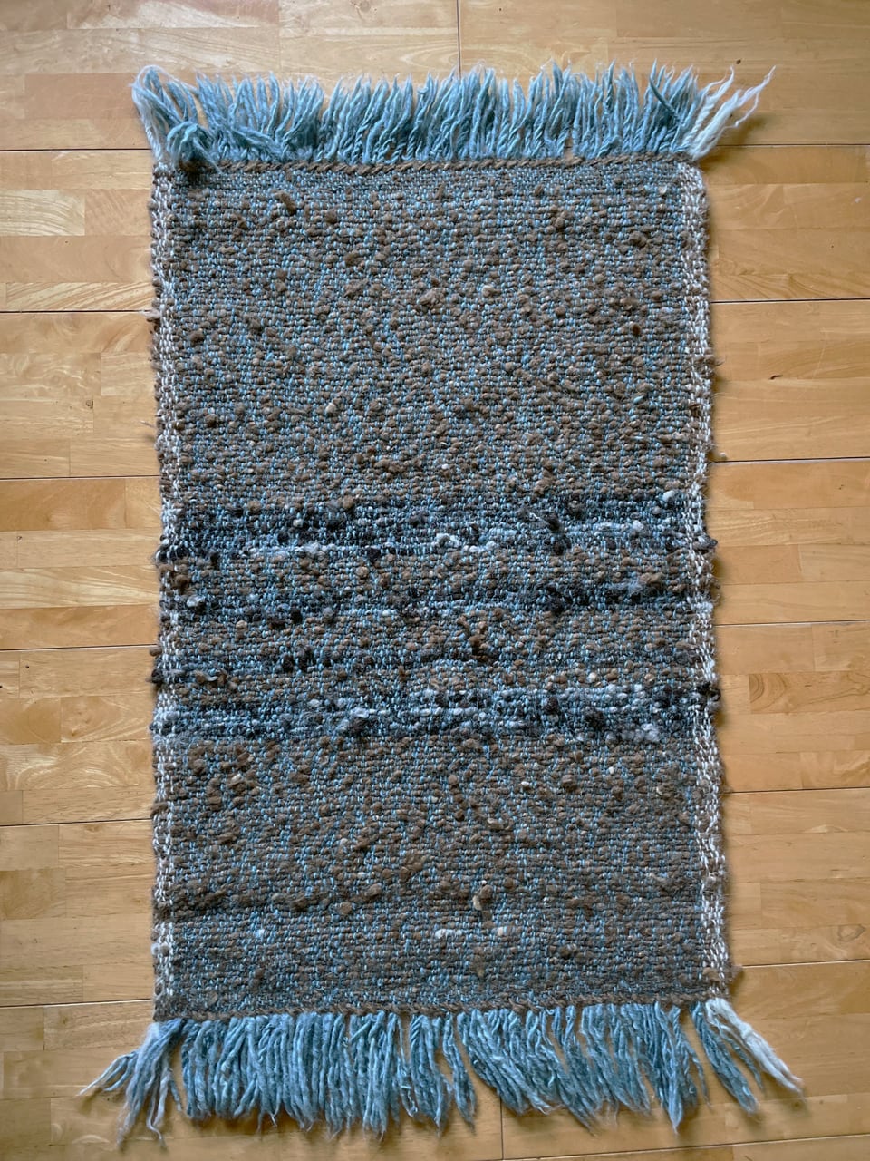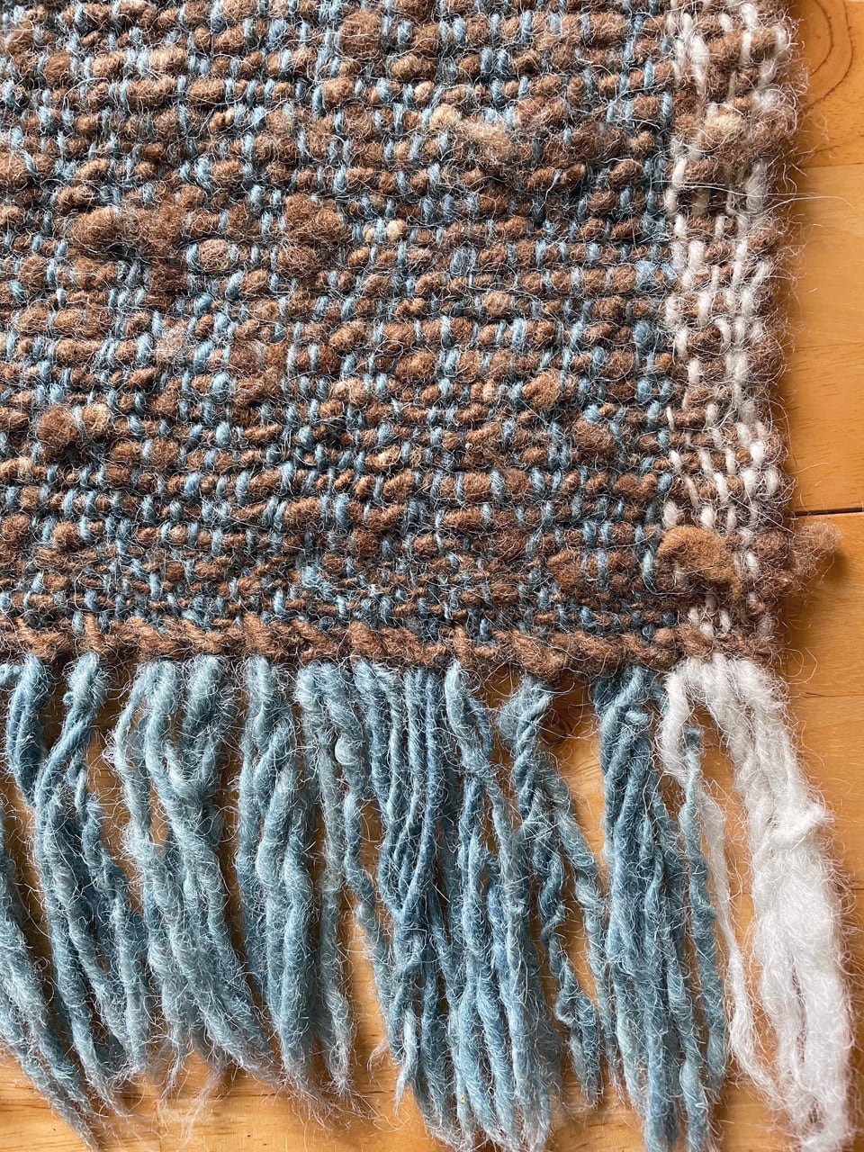 藍染の経糸に極太の横糸を織り込んだマットです。
