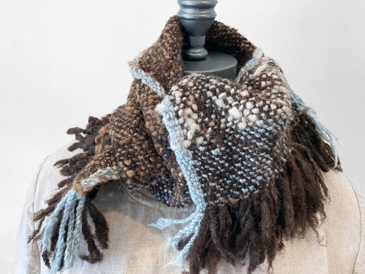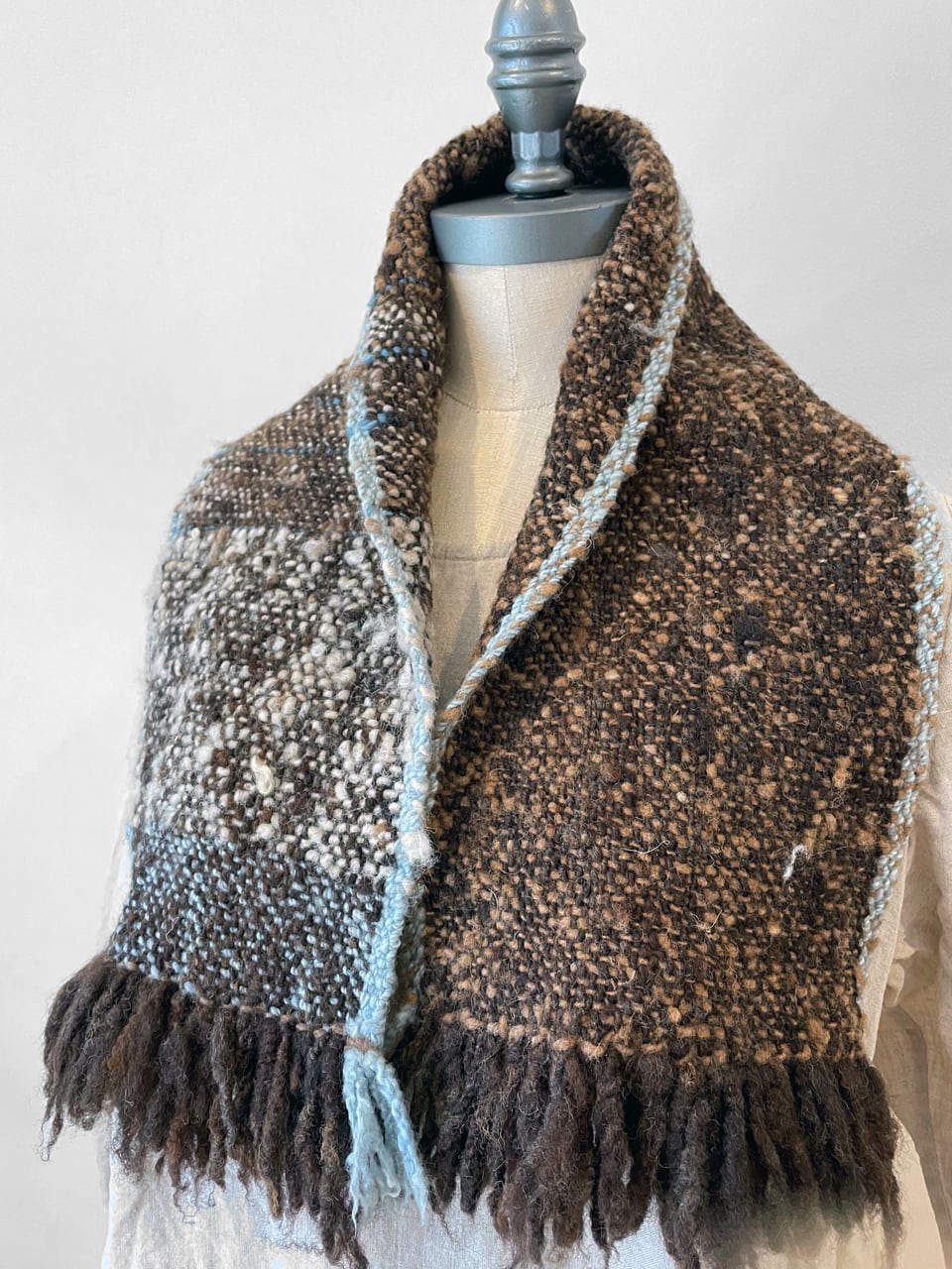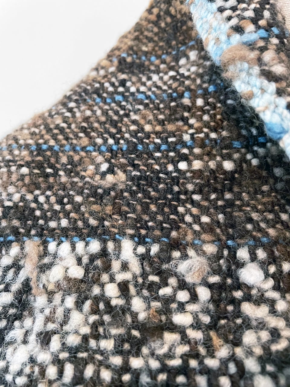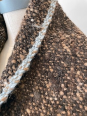 迫力感ある厚手手紡ぎ手織のツイード。両サイドの藍色で柔らかな印象に。