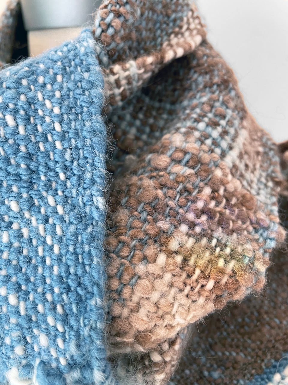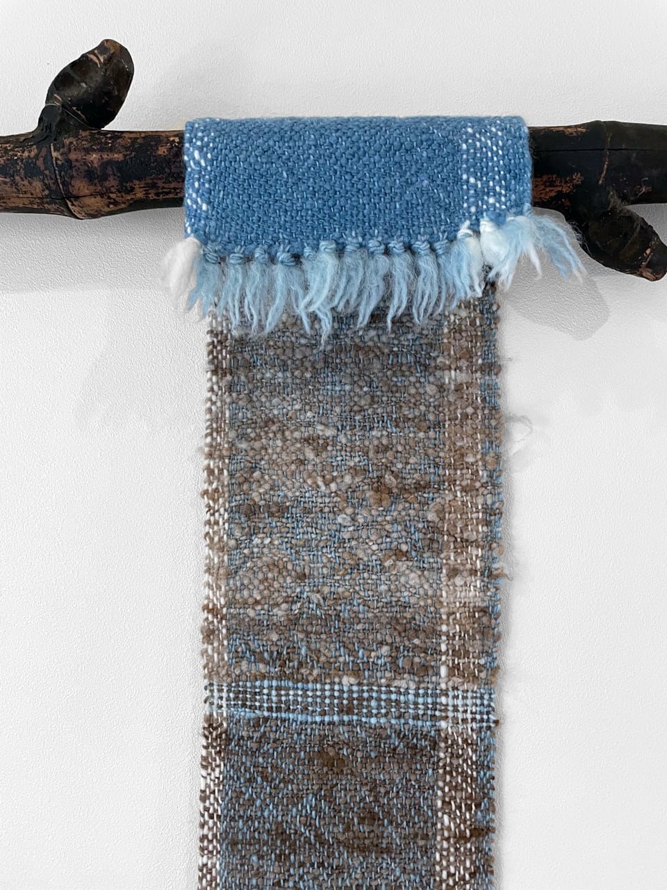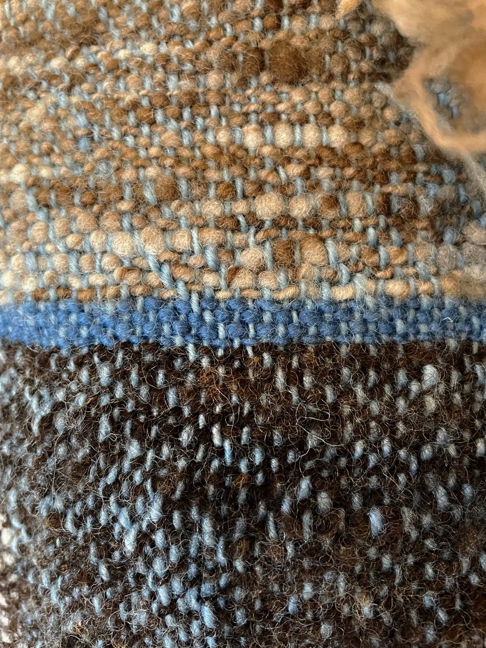 藍染の経糸をベースに様々な茶色を織り込みました。