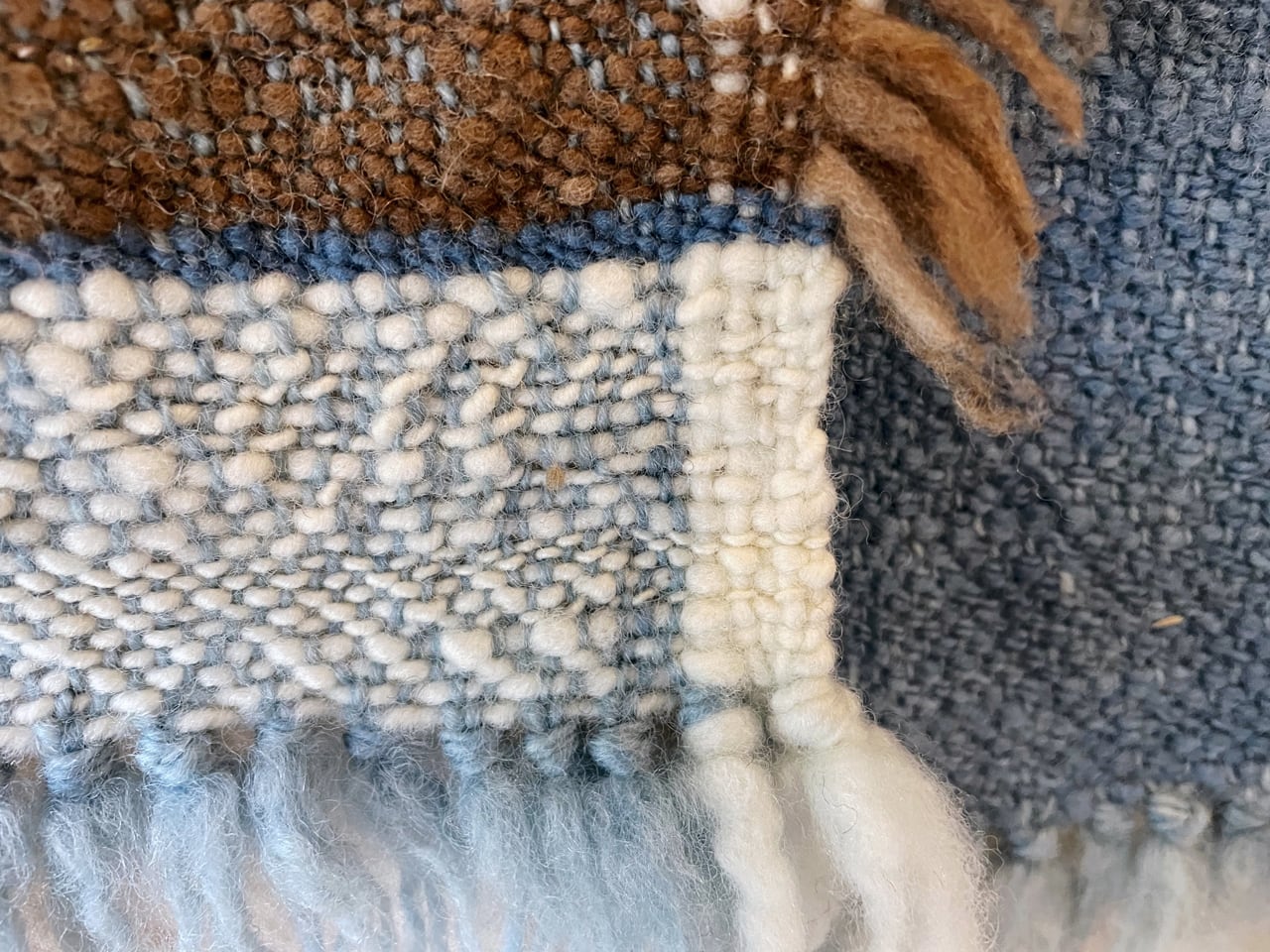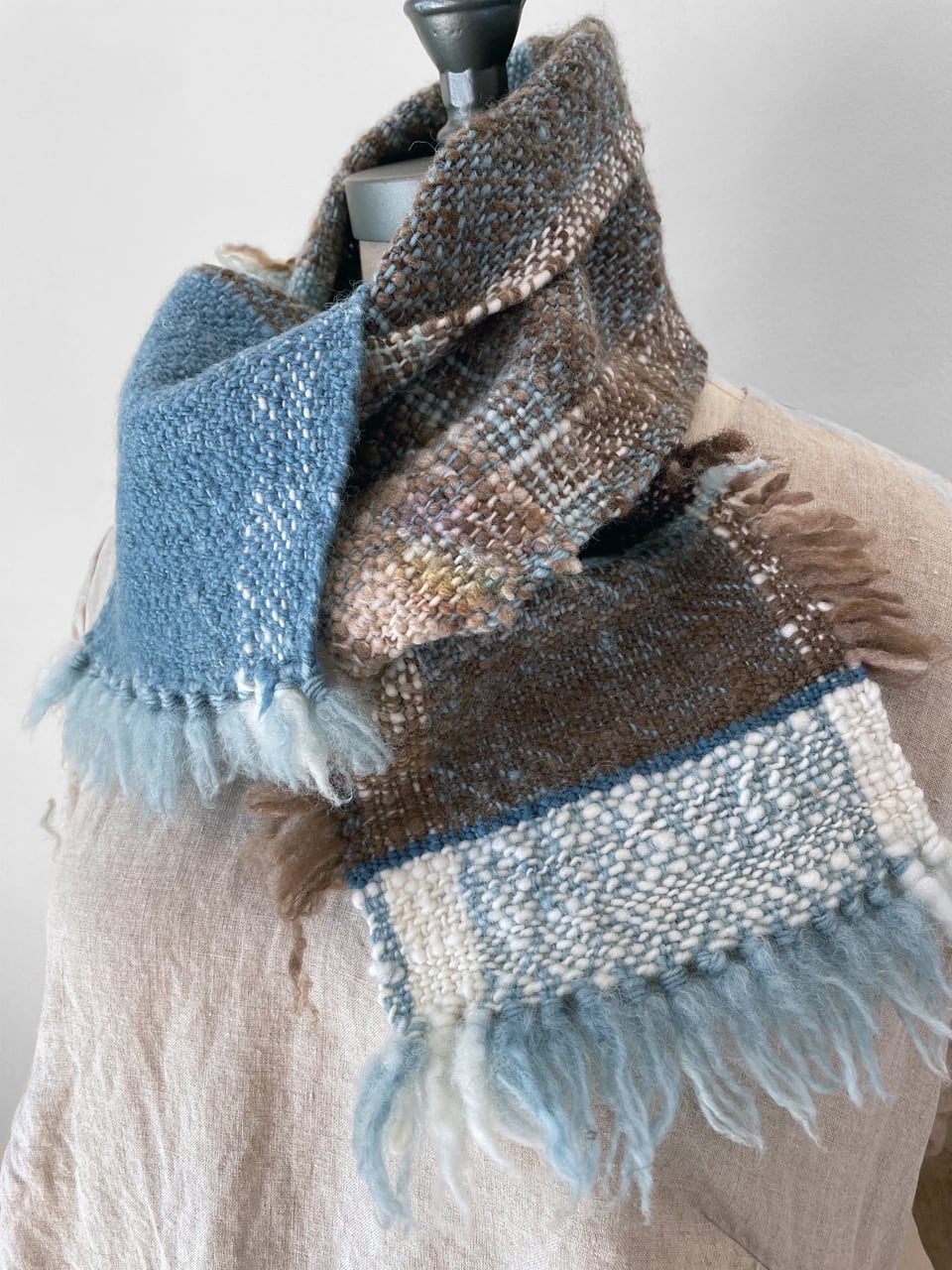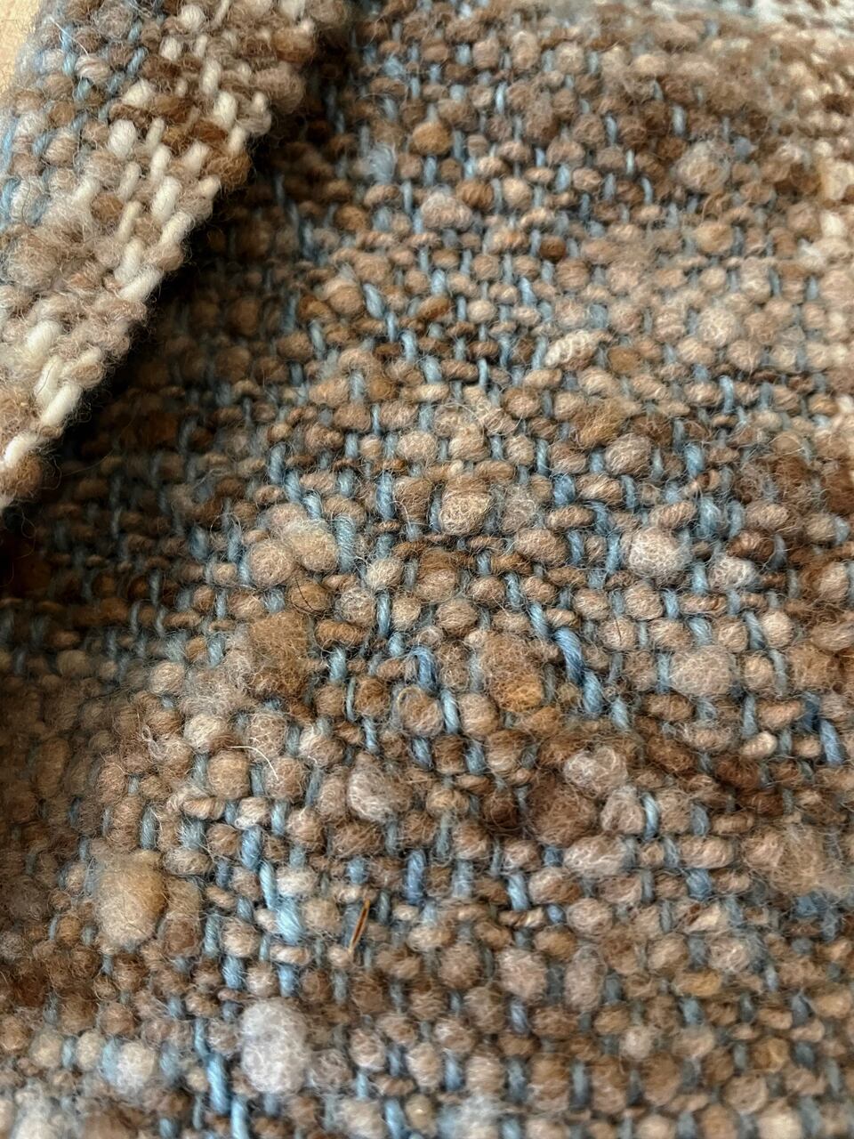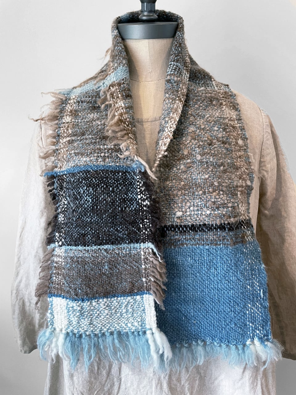 藍染の経糸をベースに様々な茶色を織り込みました。