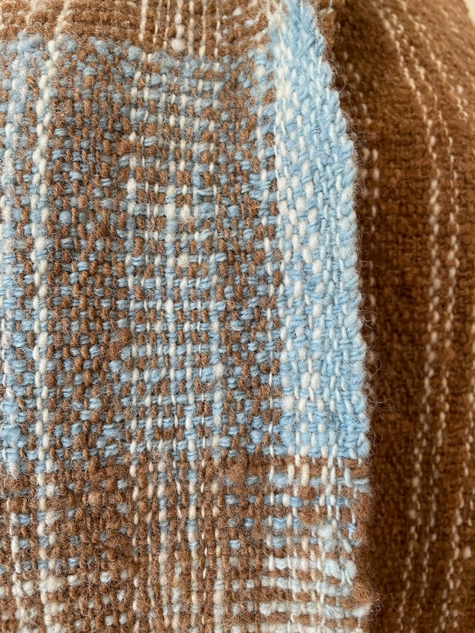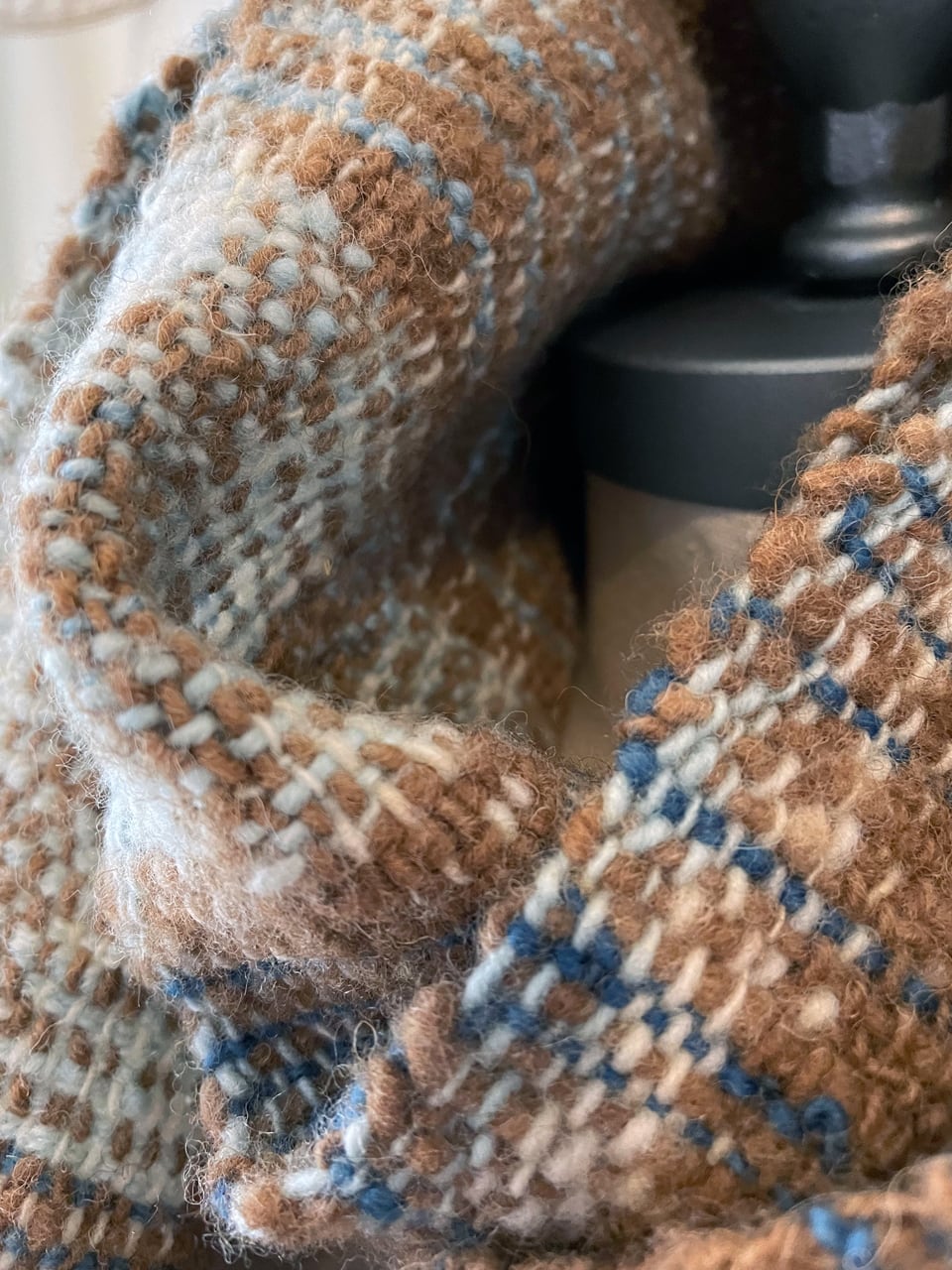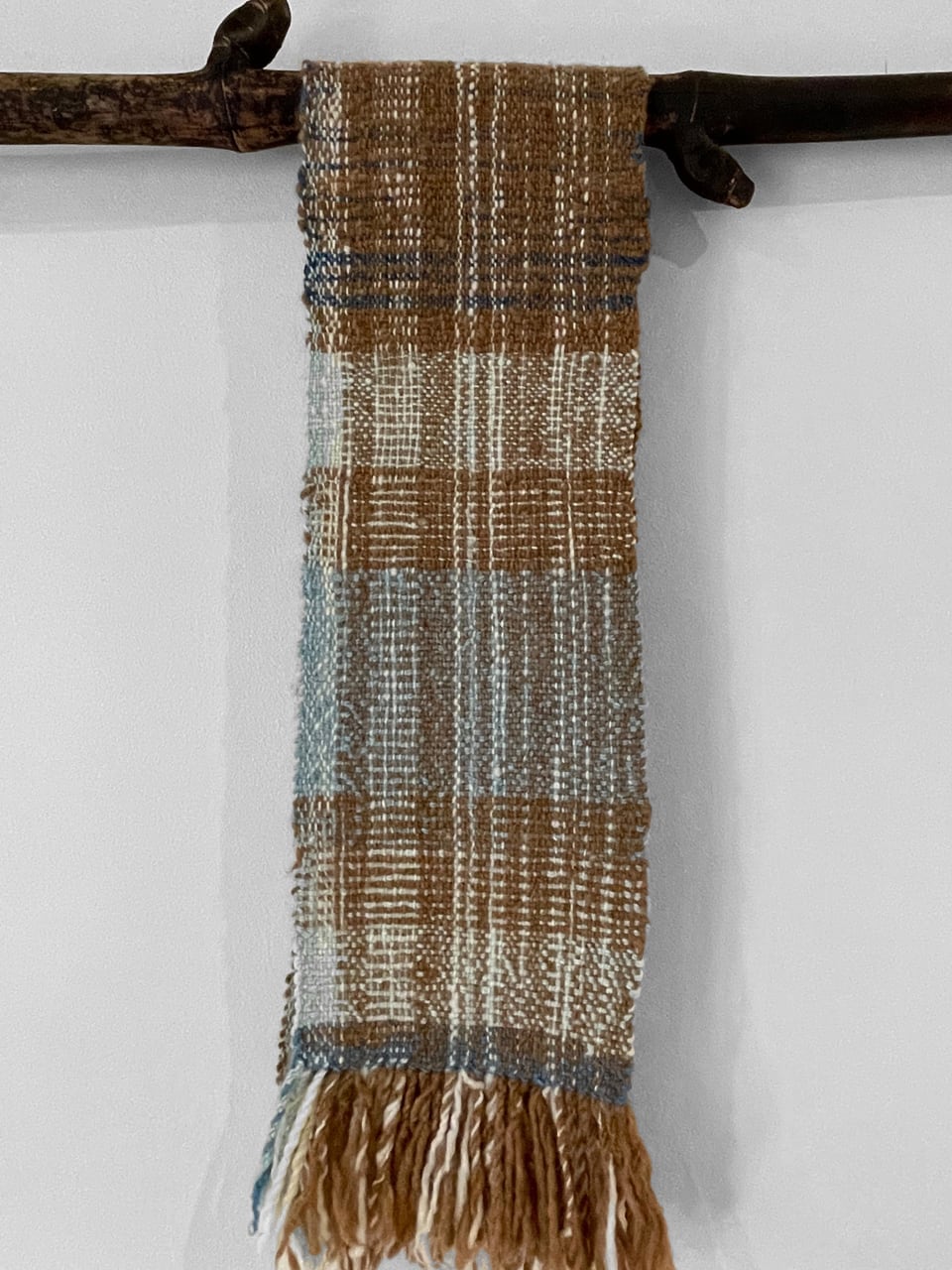マンクスをベースに藍染の横糸を織り込んだマフラーです。