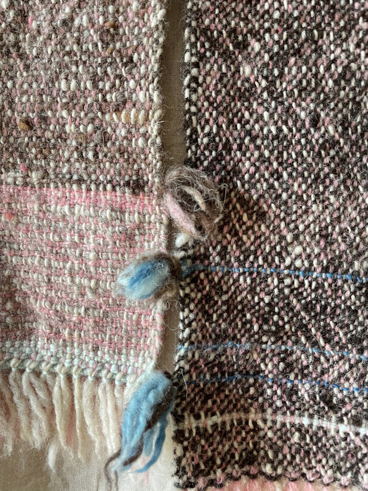 茶xピンクをベースに藍をポイントにフリンジで遊びました。